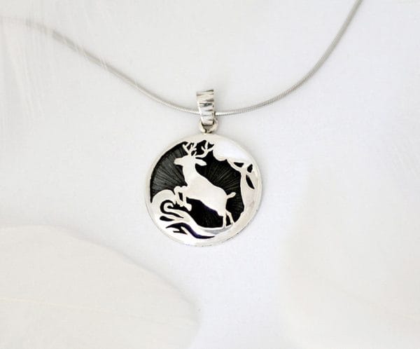 灵感源自传说中的九色鹿,这款手工项链以925银精心雕琢,线条流畅,勾勒出鹿飞跃的身姿,与树影溪流相映成趣,宛如一幅灵动的自然画卷。温润的光泽与细腻质感,轻轻守护内心的宁静与美好,让每一个瞬间都流淌着自然的灵气,轻松点亮特别时刻。