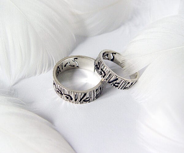 这款盟约 925银对戒,以世界上最古老的文字之一——希伯来文手写体的“I love You”作为刻字,寓意深远,象征着语言的传承与爱的永恒。戒指精心设计,配以錾刻的树纹机理,彰显自然的力量与生命的延续,对爱情坚定誓言的承诺,诠释着“惟爱永恒”的深情与誓言。佩戴这款对戒,仿佛将无尽的爱与承诺紧紧相依,成为永恒盟约爱的密码……