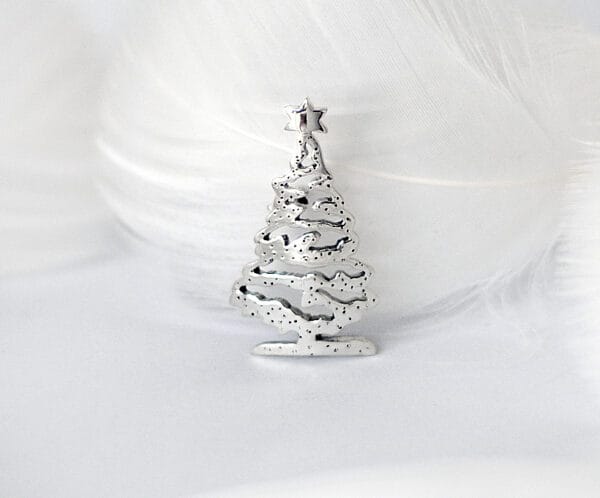 This silver Christmas tree brooch captures the warmth and beauty of Christmas with exquisite craftsmanship. A shining star adorns the top of the evergreen tree, symbolizing the birth of Jesus Christ, bringing blessings of joy and hope. The tree is dotted with delicate snowflake-like decorations, as if gently lifting the festive atmosphere, adding a touch of warm Christmas atmosphere to you.